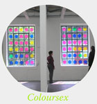 "Tim Otto Roths Farbreflexionen sind dadurch gekennzeichnet, dass der Künstler sich persönlich immer mehr zurücknimmt und die Farbe selbst zum Akteur werden lässt. Die Selbstorganisation von Farbe steht in besonderer Weise im Zentrum von dem Werkzyklus "Coloursex". In den Arbeiten dieser Serie werden Farben über den Farbkreis dynamisch in Beziehung zueinander gesetzt. [...] Die rund um den Kreis angeordneten Farben werden als Uhrzeiten interpretiert und definieren den Zirkel zu einer Art "Farbuhr". Durch das Wechselspiel mehrere solcher Farbuhren entsteht die eigentliche chromatische Dynamik. Synchron reagieren die Farbuhren auf die Nachbahruhrzeiten, die zur eigenen Uhrzeit gerechnet werden und somit die neue Uhrzeit ergeben. Die Farbuhren können in einer Reihe interagieren oder aber flächig in einem Raster angeordnet werden.