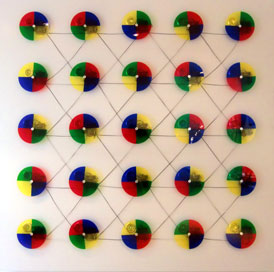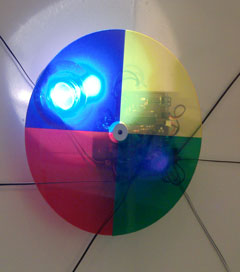 Chromology, 25 disco colour wheels, Atmel based electronics, servo motors, halogen pin spots, 220x220 cm, Dresden 2009