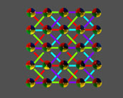 The colour clocks record the status of their wired neighbour colour clocks. The next colour time is the result summing the neighbouring colours. These local interactions create a dynamical colour network system. For each new exhibition the wiring and consequently the neighbourhood rules are changed. For the first presentation in Dresden the connection assumes the shape of lying Y and comprises three neighbours.