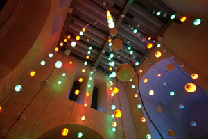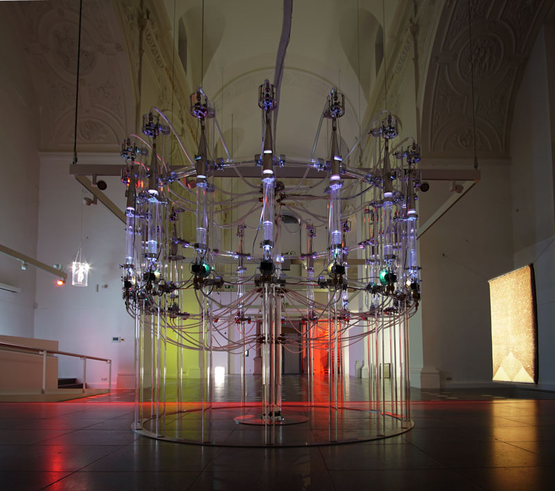 Without a conductor and without a score, complex sound patterns emerge in aura calculata, which are anything but random: whereas in a classical composition, the cues of a performer are specified according to certain formal principles as a temporal sequence of notes, the sounding activity of organ pipes (or loudspeakers) in aura calculata follows a spatial-sculptural approach.