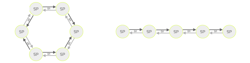 Sound network The acoustic bodies arranged in a circle represent the simplest form of a network, in which, similar to a Mexican wave, the activity of their immediate neighbours determines whether they play and light up in the next time step or just remain off.
