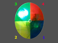 Chromology, 25 disco colour wheels, Atmel based electronics, servo motors, halogen pin spots, 220x220 cm, Dresden 2009