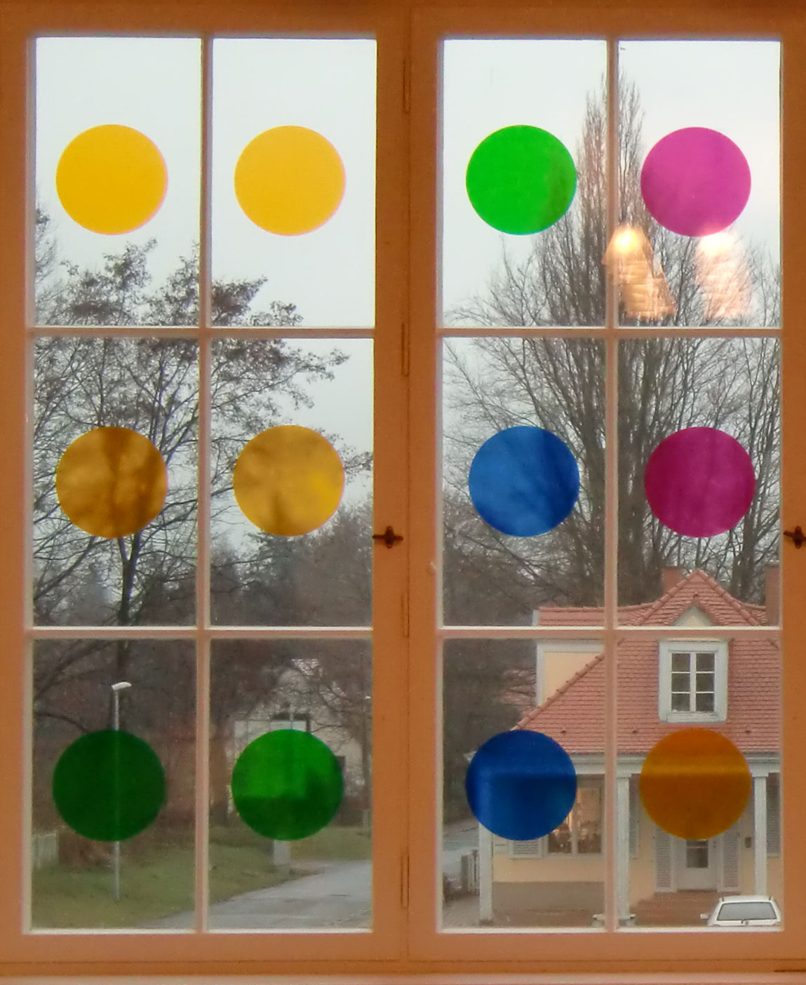 Die jüngste Installation ist aktuell im Festspielhaus Hellerau anläßlich der Ausstellung "Farbe materiell – Farbe immateriell" zu sehen. Die sechzig farbigen Punkte in den beiden großen Fenstern im Treppenhaus des Foyers entfalten nach außen ihre volle Wirkung in der Abendzeit. Mit der Ausrichtung der Fenster nach Süden inszeniert tagsüber die tiefstehende Wintersonne ein kontinuierlich sich veränderndes Farbspiel mit der Architektur im Inneren.