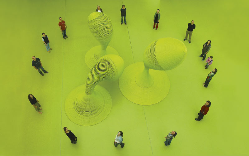 PIXELSEX brings literally the mathematical self-organization principle of cellular automata to the point: Like in a football stadium spatio-temporal patterns as the Mexican wave evolve without a central control or directing instance, but are the result of the local interaction of agents with their neighbouring agents according to simple rules. In Tim Otto Roth's series of projects such agents can be pixels of a light façade in public space, a knot in a traditional carpet or human performers as in a choir. To express eventual social implications Tim Otto Roth uses in recent years also the concept of Mathematical Socialism (MaSo).